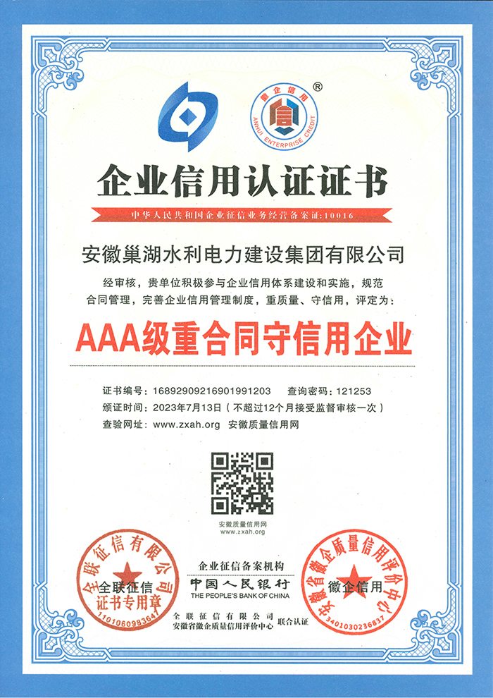 - 2024-09-26關(guān)于公司榮獲2024年度第一批工程建設(shè)企業(yè)信用等級(jí)評(píng)價(jià)AAA結(jié)果的公示